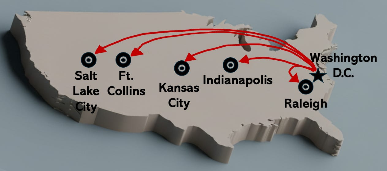 RB: “Well, it occurs to me that USDA Deputy Secretary Vaden, when he announced the closures, said Trump’s idea is to control this sprawling federal bureaucracy. But to control it, they’re actually sending it away to many far, far away places. And that seems the opposite of actually controlling sprawl!”